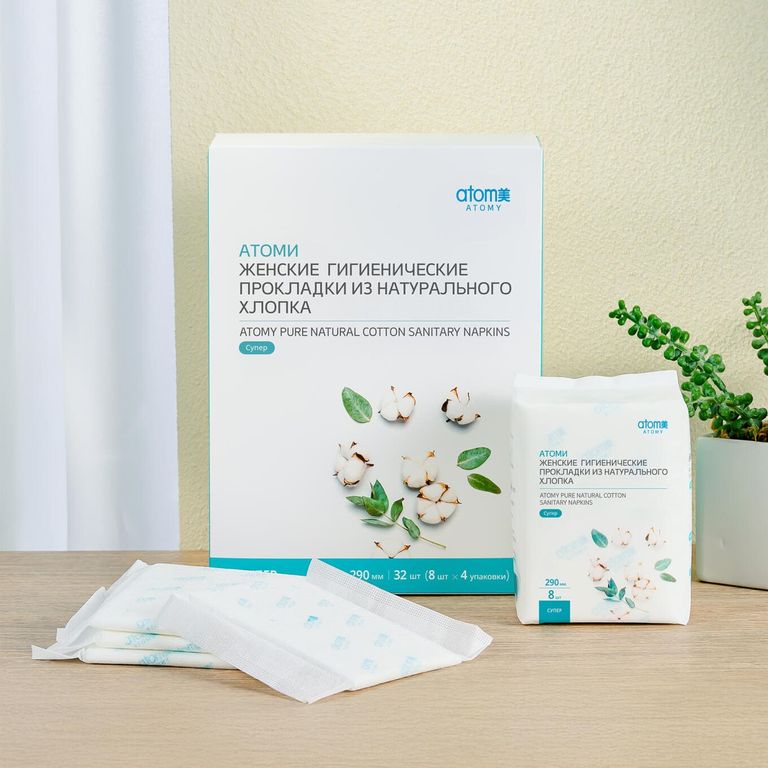 Гигиенические прокладки Atomy Super из хлопка (32 шт)