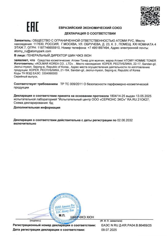 Тонер Атоми после бритья для мужчин