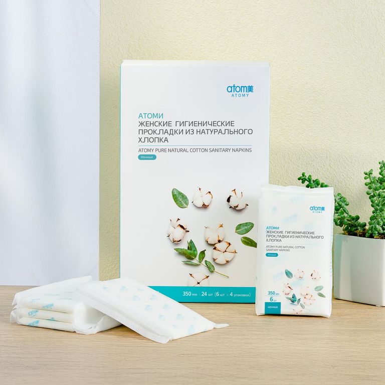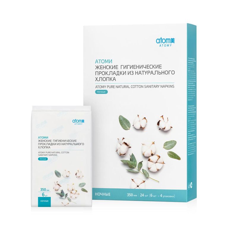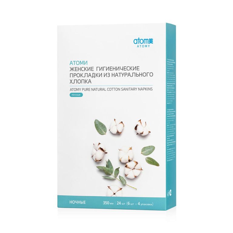 Ночные гигиенические прокладки Atomy из хлопка (24 шт)