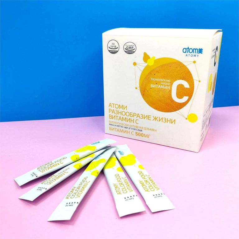 Атоми Витамин С (Atomy Vital Color Vitamin C) – это высококлассная биологически активная добавка, разработанная для поддержки вашего организма необходимыми витаминами и минералами. Каждый упаковка содержит 90 саше с вкусом манго, обеспечивая ваше тело 500 мг витамина С в каждой порции.